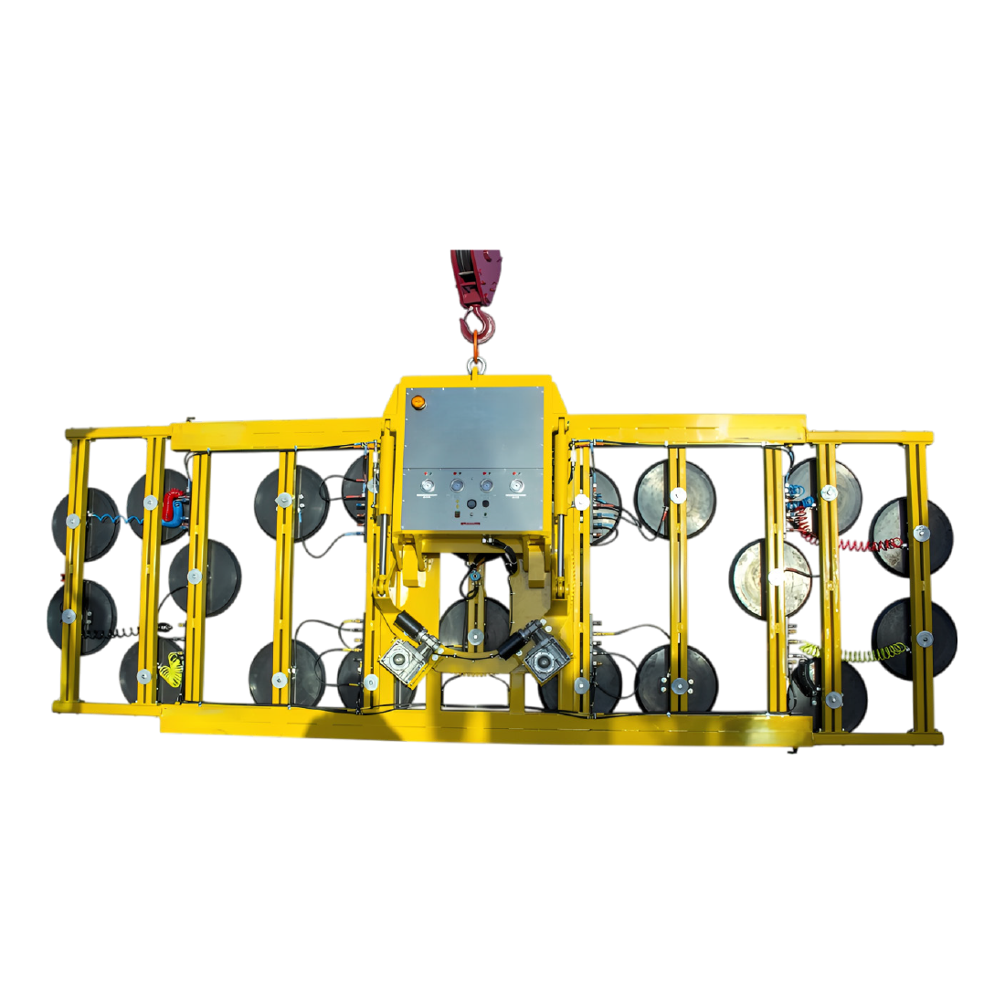 large, heavy loads. This quad-circuit window sucker features four independent vacuum circuits and can be configured to lift different sized loads, making it extremely versatile for consideration on a wider range of large capacity projects. The Hydraulica 6000 is complete with cable remote control, extension arms and a transport stand as standard, with a radio remote control available as an optional accessory.